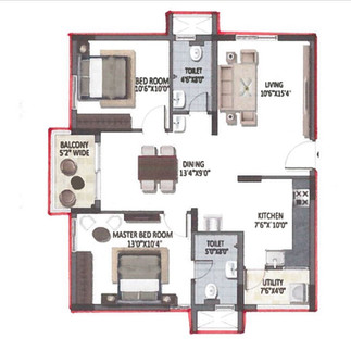 1 Balcony and 1 utility area (Spacious Balcony attached to Dining area).
